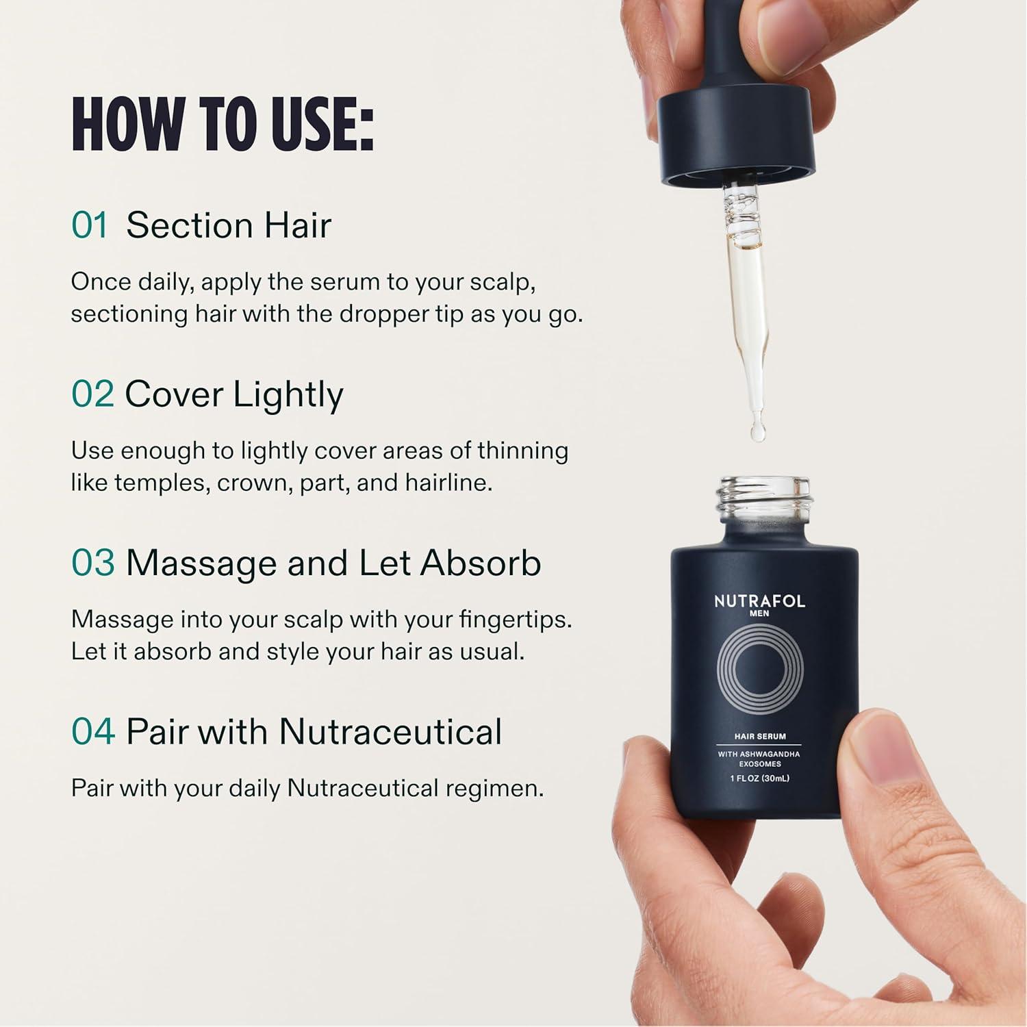 Nutrafol Men’s Hair Serum, Clinically Tested to Support Visibly Thicker Hair and Scalp Coverage, Lightweight and Non-Greasy, for Daily Use – 30mL, 1 Bottle