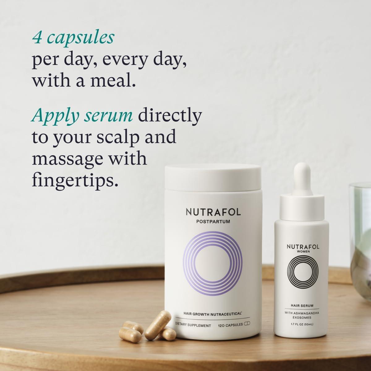 Nutrafol Postpartum Hair Growth Supplements and Hair Serum, Clinically Tested for Visible Thickness and Strength – 1 Month Supply, 1.7 Fl Oz Bottle